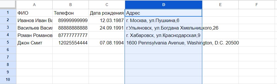 Это позволит перенести текст на другую строку в тех ячейках, где он не помещается в границы и применить это правило для всех новых адресов, которые будут вписаны в эту таблицу.