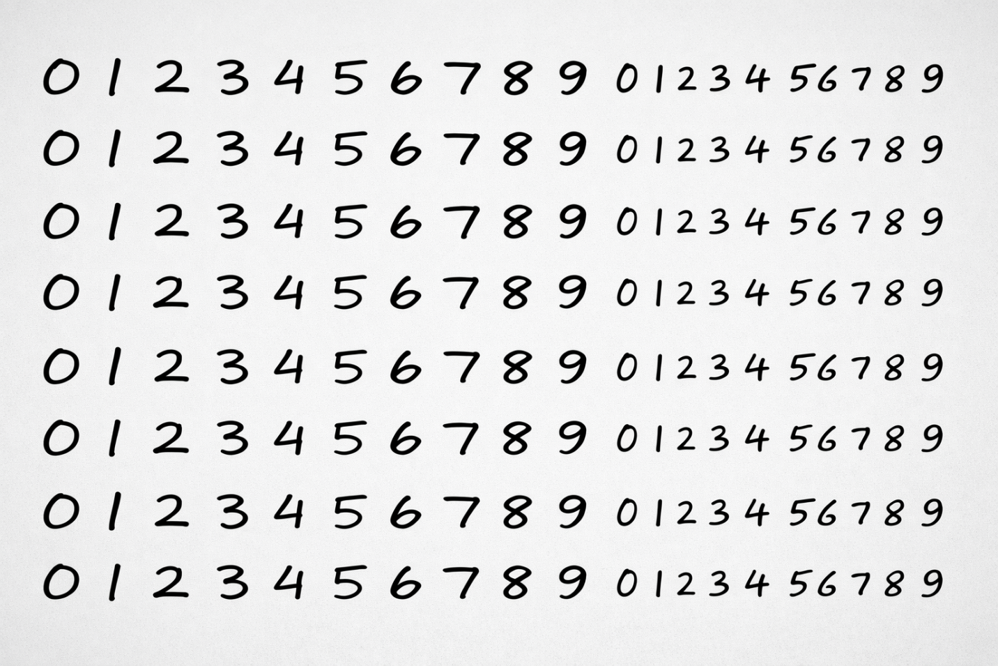 MNIST сформирован на основе крупных архивов рукописных цифр, полученных при обработке переписей населения. Разные авторские стили были унифицированы, изображения прошли нормализацию и центрирование. Это позволило создать удобный в использовании массив данных, на котором можно проверять ошибки моделей, тестировать скорость их сходимости и анализировать устойчивость к вариациям написания.