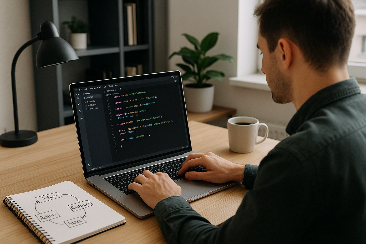 Важный момент — неизменяемость. Reducer не меняет старые данные напрямую, а создаёт обновлённую копию. Это позволяет легко отслеживать изменения, избегать трудноуловимых ошибок.